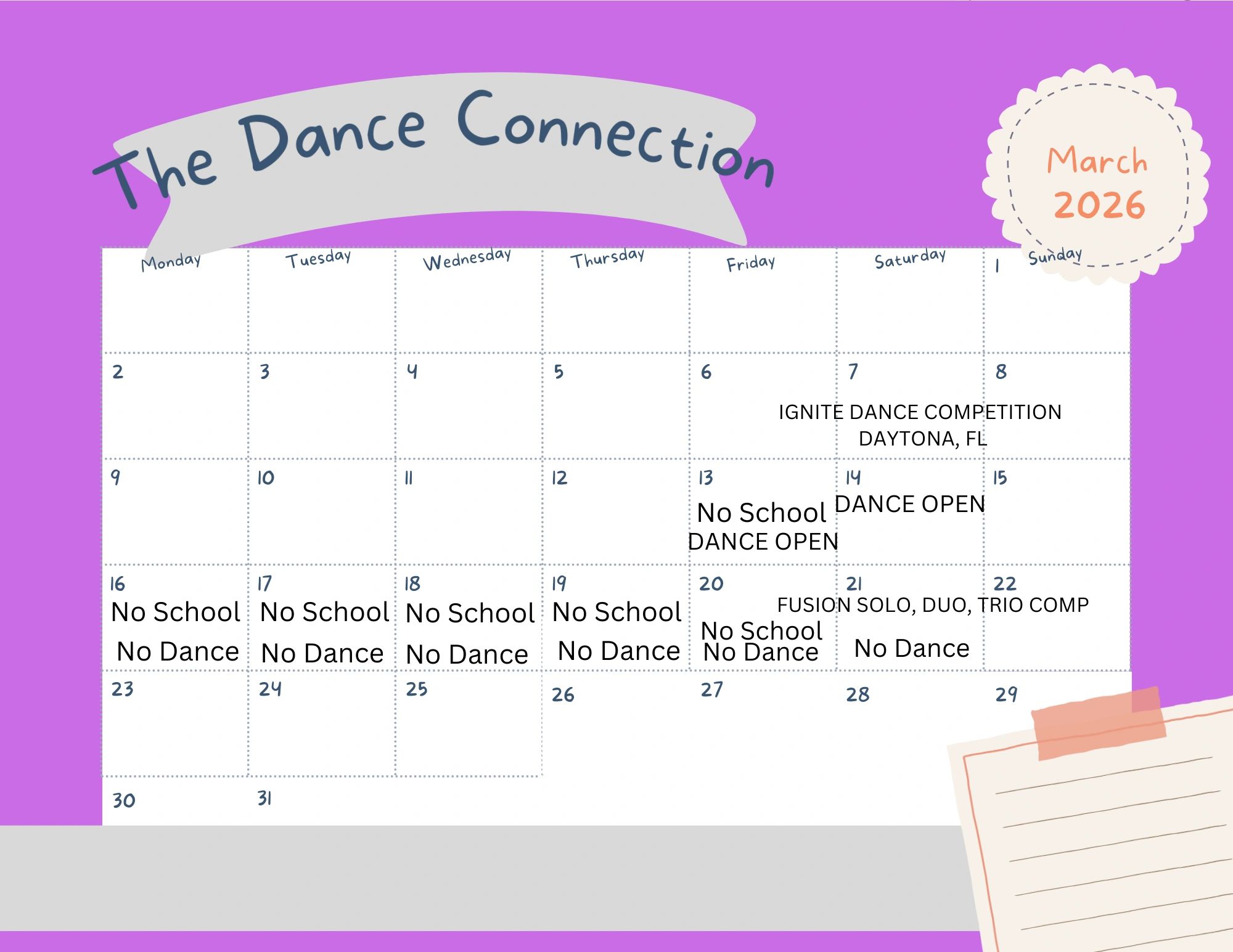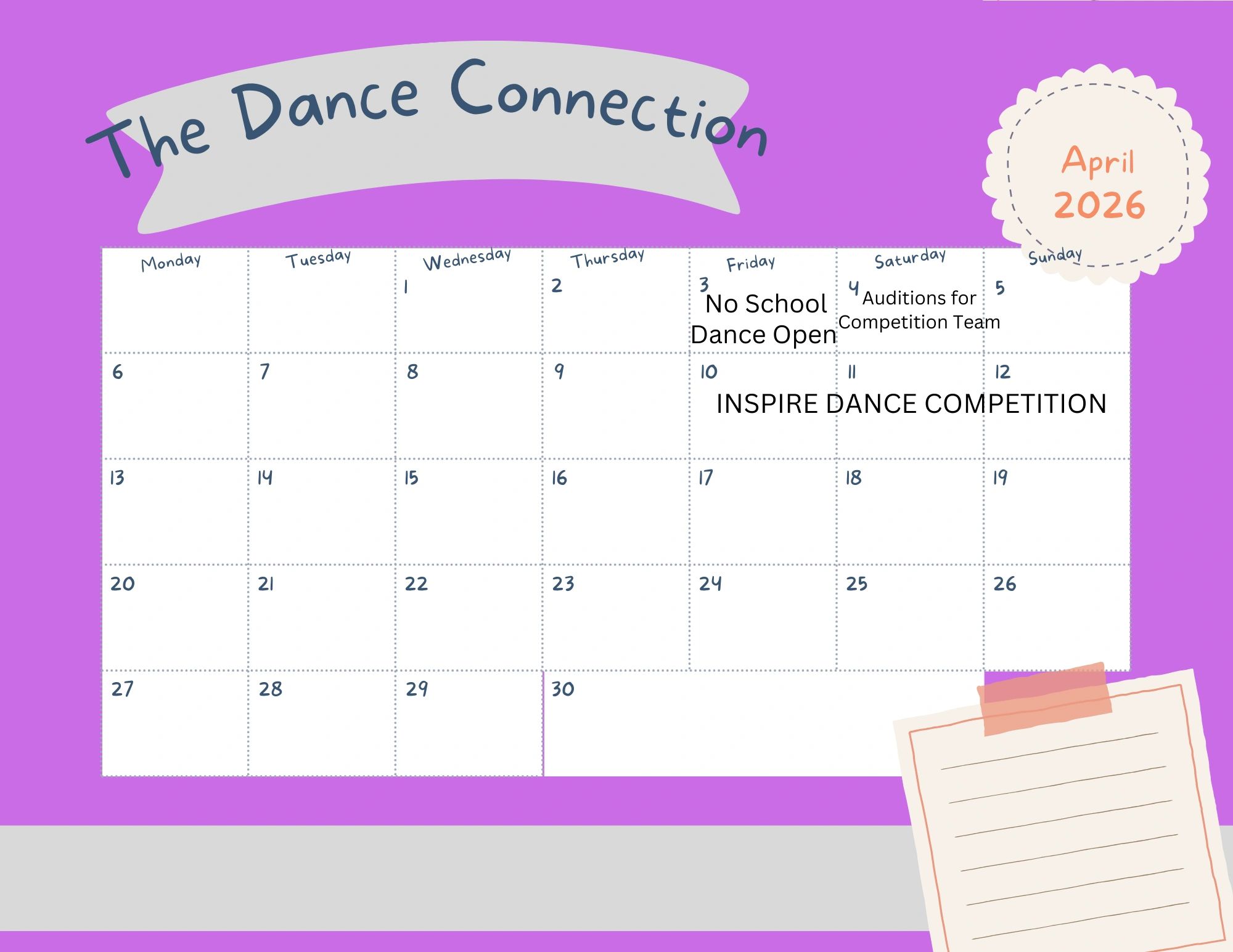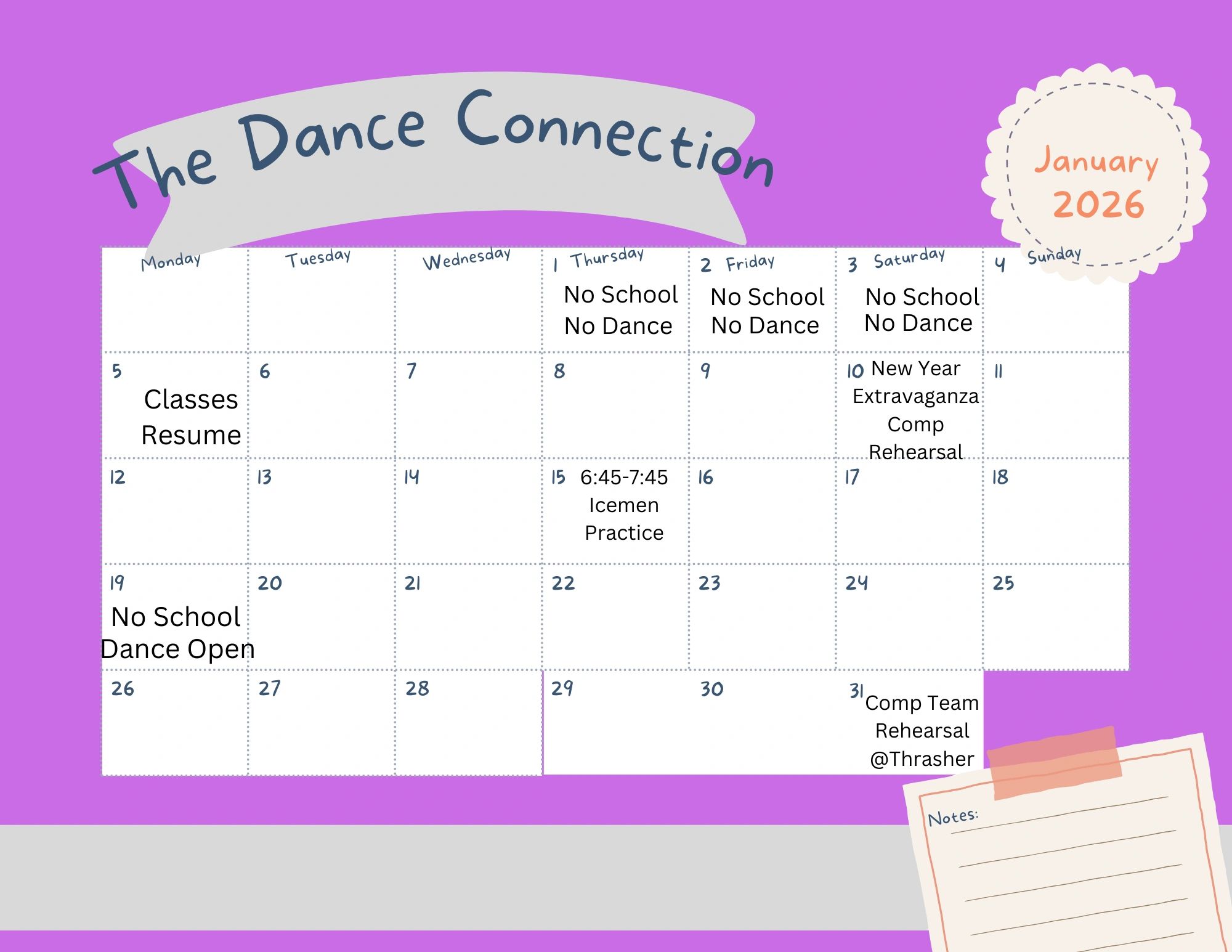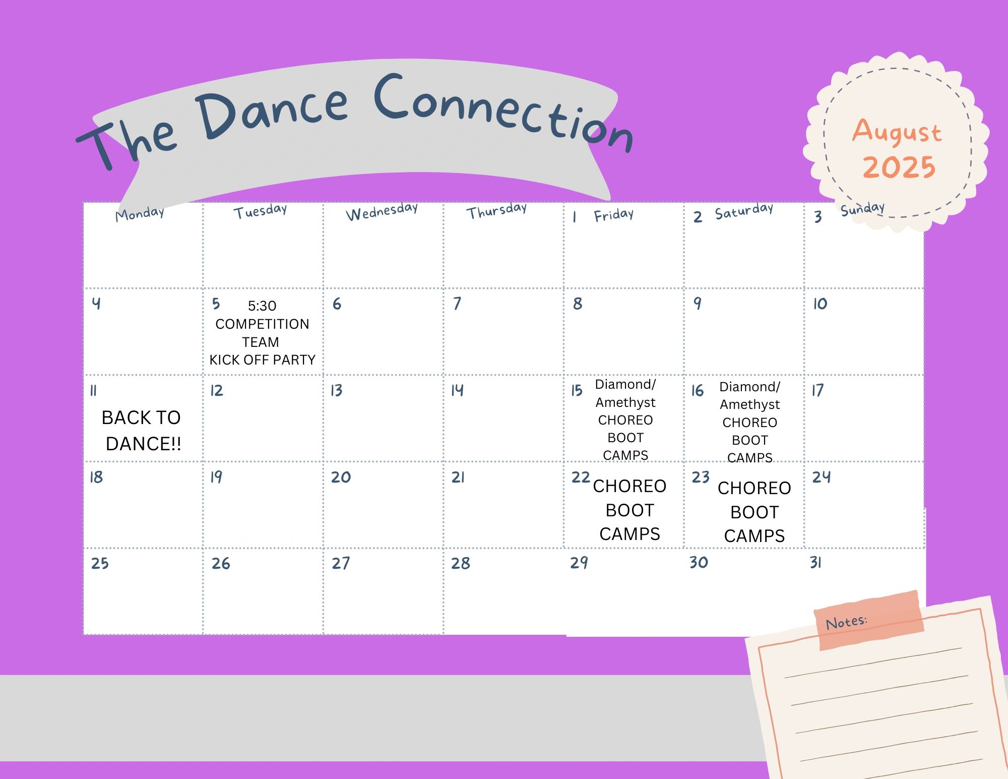 Stay tuned for our monthly schedules!